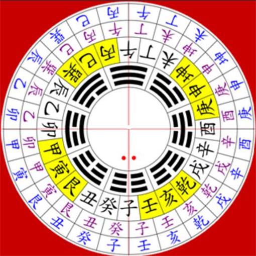 廿四山分金五行属性:廿四山分金中由八卦配八干(戊己居中宫),十二支,子午卯酉代替坎离震兑,戌辰亥巳配乾巽二宫,丑未寅申配艮坤二卦,八干居四正卦。甲卯乙居正东方震卦属木,亥卯未三个合也属木,甲卯山向为吉。丙午丁居正南离宫属火,寅午戌三合属火,午丁山向为吉。庚酉辛居正西方兑宫属金,巳酉丑三合属金,庚酉山向为吉。壬子癸居正北坎宫属水,申子辰三合属水,癸子山向为吉。戌乾亥居西北乾卦属金,乾亥山向为吉。辰巽巳居东南巽卦属木,辰巽山向为吉。丑艮寅居东北艮宫属土,艮寅山向为吉。未坤申居西南坤宫属土,坤申山向为吉。