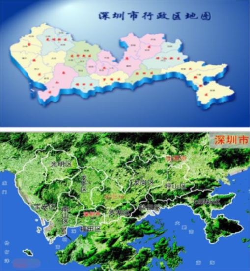 深圳市又名“鹏城”,其来源来之于600多年前(明洪武二十七年)军政在大鹏半岛建立所城的原因外,更大原因来自于改革开放后,深圳特区首任开发执行官的远大目光及对风水理念的精深领悟与运用的结果,从无到有的把深圳市的整体地理风貌建造成一只“大鹏展翅”区块风貌。从全境的区域版图及山脉气势而看形同一只展翅腾空高飞的大鹏形状。深圳市共设6个市辖行政区。其中,深圳经济特区内4个区,即福田区、罗湖区、南山区、盐田区;特区外2个区,即宝安区、龙岗区。
